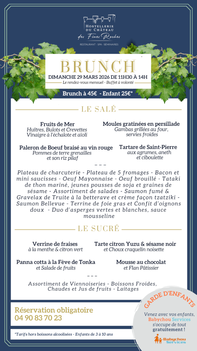L'Hostellerie du Château des Fines Roches vous propose un brunch pour un moment gourmand !
